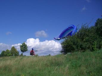 Keywords: paragliding start trial pilot paraglider floating sailing sky blue castle hill