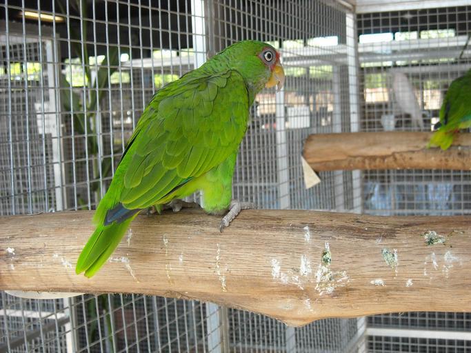 Keywords: parakeet small parrot bird pet cage colorful green plumage