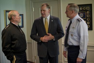 | Keywords: Paralympic athletes visit Pentagon 120913-D-TT977-120.jpg en U S Army Gen Martin E Dempsey left the chairman of the Joint Chiefs of Staff and U S Air Force Gen Mark A Welsh III right the chief of staff of the Air Force speak with Charlie Huebner the chief of Paralympics for the U S Olympic Committee as Paralympic athletes visit the Pentagon Sept 13 2012 The Paralympics is a major international sporting event in which thousands of athletes including wounded and injured U S Service members participate in a variety of sporting events <br>Unit Defense Imagery Management Operations Center 2012-09-13 Petty Officer 1st Class Chad McNeeley https //www dvidshub net/image/665773/paralympic-athletes-visit-pentagon 120913-D-TT977-120 2012-09-17 02 55 THE PENTAGON DC US PD-USGov Mark A Welsh III Martin E Dempsey in 2012 Images from DoD uploaded by Fæ |