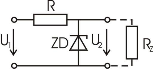 Keywords: Parametricky.png Schéma parametrického stabilizátoru napětí own 2008-01-23 Filip Albert Circuit Voltage regulator circuits Zener diode logic
