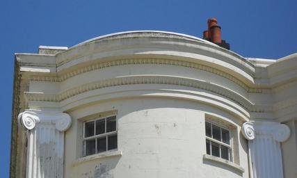 | Keywords: Parapet and Cornice at 102 Marine Parade, Brighton.JPG The upper section of 102 Marine Parade Brighton City of Brighton and Hove England Here are several of the characteristic features of Regency architecture a bow front stucco decorative capitals fluted pilasters and an ornate parapet own 2010-06-22 The Voice of Hassocks Cc-zero DEFAULTSORT BRighton Marine Parade 1820s architecture in England Architectural elements in Brighton East Sussex Cornices in the United Kingdom Egg and dart Grade II listed buildings in Brighton and Hove Ionic capitals Marine Parade Brighton Parapets in the United Kingdom Pilasters in England |