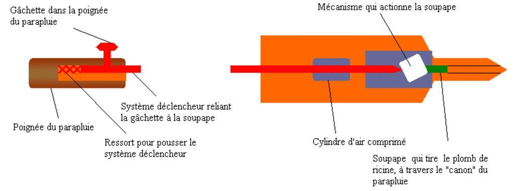 Keywords: Parapluie bulgare.PNG Traduction française du schéma représentant le mécanisme de mise à feu du parapluie utilisé pour assassiner le dissident bulgare Georgi Markov Original Image Markov umbrella PNG réalisé sous MS Word par en User DO'Neil et mis dans le domaine public Version française réalisée sous MS Paint par fr Utilisateur Muad également pour le domaine public Own 2008-04-13 Muad Convert to SVG Deaths from murder Georgi Markov Toxicology |