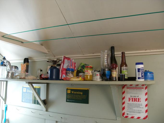 Keywords: Pararaki Hut 7.jpg The interior of the Pararaki Hut kitchen shelf 2013-02-11 own Sarang Pararaki Hut
