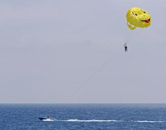 Keywords: parasailing mediterranean powerboat screen leisure fun activity holiday holidays fly sail towline coast summer sun côte d'azur blue sky sea nice south of france tail rotor shaft