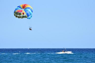 Keywords: parasailing sports sea ocean action horizon parachute people boat