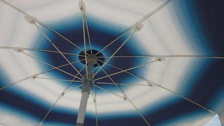 Keywords: parasol blue white spokes tissue fabric sun screen shadow sun protection summer stretched pattern background holiday italy
