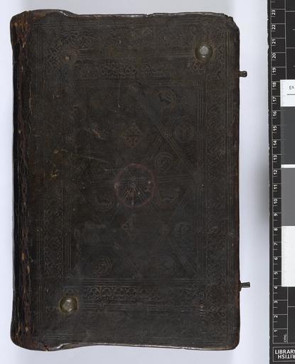 Keywords: PARHAM MS VIII- New Testament, without the book of Revelation -Ancient Greek- - Upper cover (Add Ms 39590).jpg Style Panel design Byzantine; Caption Upper cover; Colour Brown; Edge Unspecified exhibition history Decorative Technique Tooled in blind; Cover Material Goatskin includes morocco turkey etc In wooden boards covered with brown leather possibly 15th century blind-tooled with ornamental borders and stamped medallions containing dogs etc metal bosses in the middle and at the four corners several of which have been lost and in two cases replaced by modern nails The fore-edge is listed on Digitised Manuscripts as f ix recto May be Greek Byzantine structure Complete digital coverage available for this manuscript; see Digitised Manuscripts object history Text 11c; Unspecified; Unspecified object type Cc-zero place of creation Binding Greece place of discovery Unspecified British Library image http //www bl uk/catalogues/bookbindings/LargeImage aspx RecordId 020-000019015 ImageId ImageId 57443 Copyright BL PARHAM MS VIII New Testament without the book of Revelation Ancient Greek Uploaded with GWToolset PARHAM MS VIII New Testament without the book of Revelation Ancient Greek - Upper cover Add Ms 39590 http //www webarchive org uk/bldatasets/bindings/add_ms_39590_fblefr jpg Bookbinding 15th-century bookbinding British Library Bookbindings Taken with Phase One IQ140 |