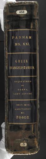 | Keywords: PARHAM MS XXI. Cruciform Gospel Lectionary - Spine (Add ms 39603).jpg Style Cross; Caption Spine; Colour Black Gold; Edge Unspecified exhibition history Decorative Technique Blocked in gold; Cover Material Unspecified Possibly 18c binding of wooden boards covered with blue velvet much worn On both covers is a cross with a patterned border between corner-ornaments all gilt The cross on the front cover has the inscription IC XC NIKA object history Text 12c; Unspecified; Unspecified object type Cc-zero place of creation Binding Not known place of discovery Unspecified British Library image http //www bl uk/catalogues/bookbindings/LargeImage aspx RecordId 020-000018510 ImageId ImageId 57138 Copyright BL PARHAM MS XXI Cruciform Gospel Lectionary Uploaded with GWToolset PARHAM MS XXI Cruciform Gospel Lectionary - Spine Add ms 39603 http //www webarchive org uk/bldatasets/bindings/add_ms_39603_fbspi jpg Bookbinding 18th-century bookbinding British Library Bookbindings Taken with Phase One P65+ |