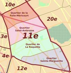 | Keywords: Paris 11e arrondissement - Quartiers.svg en 11th arrondissement of Paris with sectors fr 11e arrondissement de Paris avec quartiers administratifs own + tracés dérivés de OpenStreetMap org Starus Maps of Paris 11e arrondissement Maps of administrative quartiers of Paris Quartier de la Folie-Méricourt Quartier Saint-Ambroise Quartier de la Roquette Quartier Sainte-Marguerite | ||||