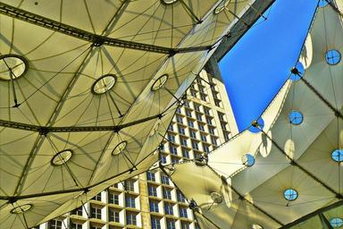 Keywords: paris architecture la défense roof construction modern futuristic sky building canopy roof skyscraper france perspective view details metropolis office building facade abstract pattern form creativity artfully