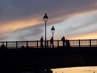 Keywords: paris bridge france architecture city europe seine river pont view evening lamp