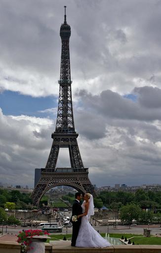 Keywords: paris eiffel tower bride and groom clouds