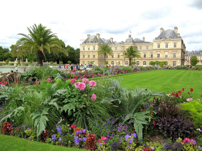 Keywords: paris france landscape palace architecture building nature outside plants sky clouds palace of luxembourg landmark destinations flowers grounds scenic trees summer spring