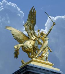 Keywords: paris france sculpture statue monument sky clouds fame in combat golden beautiful art artistic outside towering cumulus dramatic sky cloud