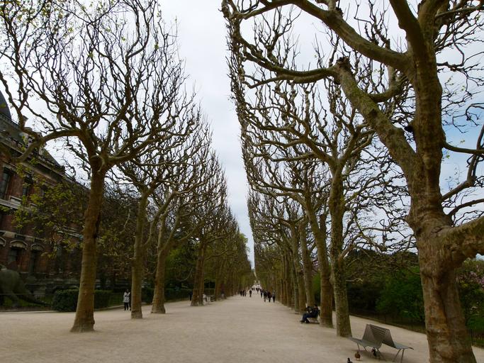 Keywords: paris france sidewalk trees winter bench walkway city cities urban people outside scenics sky clouds
