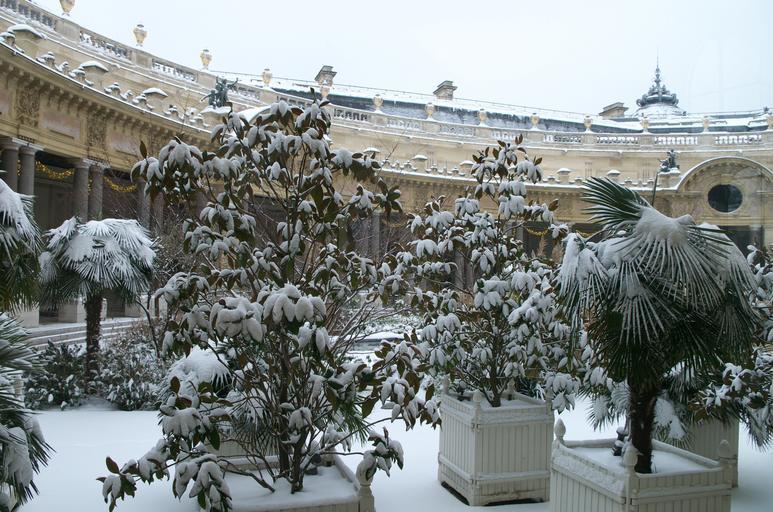 Keywords: paris france winter snow ice palace landmark plants potted nature outside sky clouds historical