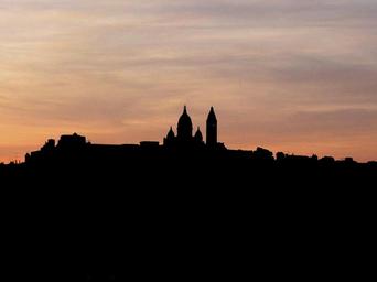 Keywords: paris montmartre sacre coeur silhouette cityscape dusk sunset sky landmark skyline basilica france shadow