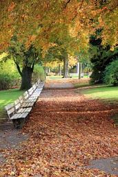 Keywords: park bank autumn away leaves trees benches bad meinberg