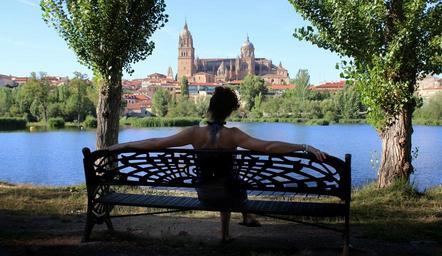 Keywords: park bench woman looking river cathedral church female girl sitting carlos zgz viewing landscape solitary contemplative resting relaxing park peaceful