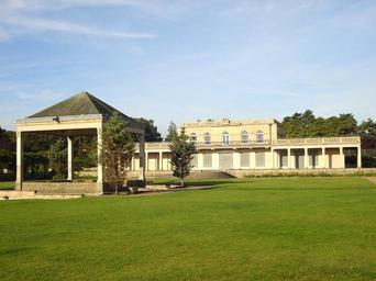 Keywords: park building nature outside architecture grass trees plants summer spring sky clouds