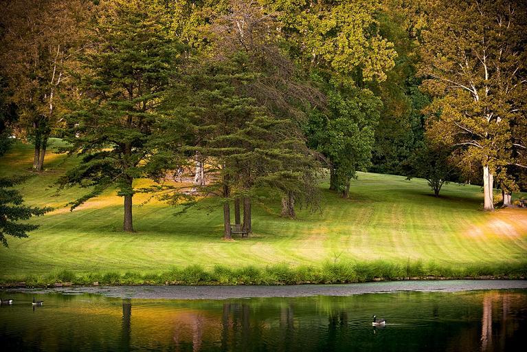 Keywords: park fall autumn outdoors season foliage beautiful landscape trees plant forest river lake scene wood