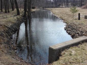 Keywords: park green landscape nature scenery autumn fall river water stream brown leaves trees sunny