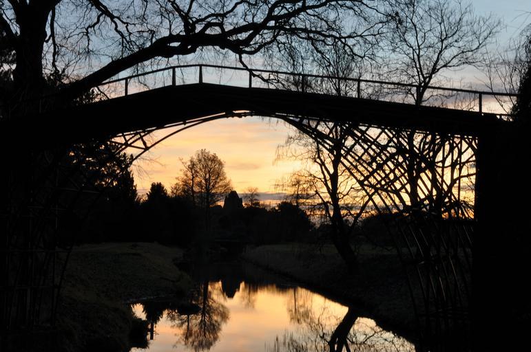 Keywords: park wörlitz bridge iron bridge dessau wörlitz abendstimmung