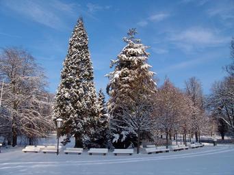 Keywords: park winter snow landscape tree trees firs away bank snowy