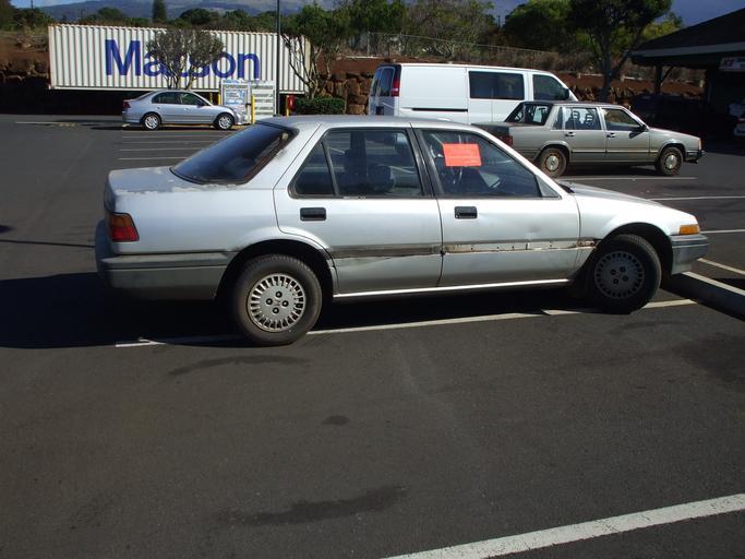 Keywords: ParkingViolation.jpg A Honda with a private security parking violation sticker slapped onto the passenger side window Own 10/22/07 293 xx xxx xx AKA Double Parking Parking Honda Accord 1985 Illegal parking