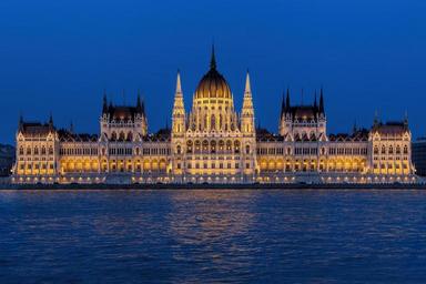 Keywords: parliament building dusk architecture government city river reflection budapest hungary danube cityscape urban lights illuminated twilight evening