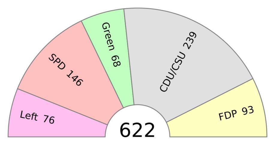 Keywords: Parliamentary Groups of the Bundestag.svg en Parliamentary Groups of the Bundestag as of 2009-10-27 Order according to the actual seating plan except for unaffiliated members which are placed near their original groups Own …¡ …¦ …« 2009-02-13 2009-07-29 2009-10-27 2009 Germany Bundestagswahl Election apportionment diagrams of German Bundestag |