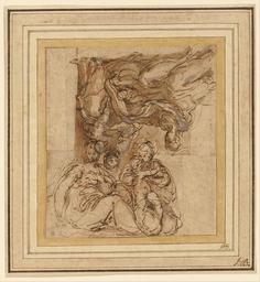 | Keywords: Parmigianino - Two Studies for a Holy Family - Google Art Project.jpg Pen and brown ink brush with brown wash over red chalk heightened with white gouache; incised line separating the two studies at the center of the sheet Christ Child Saint Elizabeth Saint John the Baptist Mary Holy Family http //www getty edu/legal/copyright html special url_id 5wEt5WOQoVw5yA PD-old-100-1923 1540 Google Art Project works by Parmigianino Drawings by Parmigianino Drawings of the Holy Family 1526 drawings Studies drawings Drawings in the Getty Center |