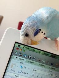 Keywords: parrot bird parakeet young budgerigar bird on mac computer