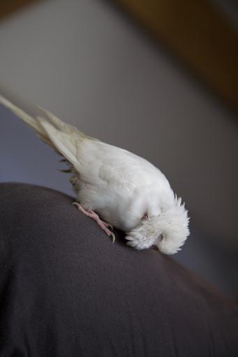 Keywords: parrot pet animal cute bird white budgie sleeping