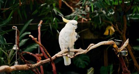 Keywords: parrot white bird branch feather perched tropical wings beak exotic portrait