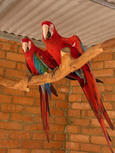 Keywords: parrots tropical birds couple wildlife red wings nature feathers beak