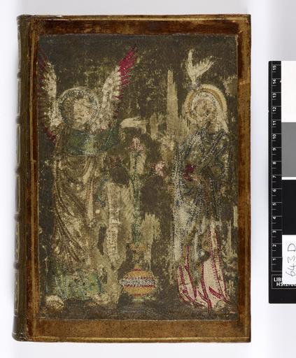 Keywords: Part 1; Psalter ('The Felbrigge Psalter'), with a calendar, imperfect (lacking July and August), canticles, litany, and prayers Origin France, N. Date 2nd or 3rd quarter of the 13th centu - Upper cover (Sloane manuscript 2400).jpg Style Religious miscellaneous; Caption Upper cover; Colour Unspecified; Edge Unspecified exhibition history Decorative Technique Embroidered; Cover Material Unspecified Historiated embroidered panels in silver red green yellow and brown on a linen ground incorporated into an 18th-century binding This is the earliest known surviving embroidered binding see Foot 1986 Binding 1st quarter of the 14th century Provenance English ownership additions in the calendar of the translations of Edmund of Canterbury bishop and confessor and Edmund king and martyr in June and other additions see Wallis 1987 p 71 Anne Felbrigge daughter of Sir Simon Felbrigge b 1368 d 1442 standard-bearer to Richard II and nun of the Franciscan Poor Clares abbey of the Annunciation of St Mary Bruisyard Suffolk the Felbrigge arms of a lion rampant gules on the painted edges; inscriptions 'ffelbrigg' f 1 verso ; 'Iste liber est sororis anne ffelbrygge ad terminum vite post cuius decessum pertinebit conventui minorissarum de Brusyerde' 2v ; obits of Anne's mother Margaret and father Simon in the calendar ff 3 5v 7v ; the probable addition during her ownership of prayers ff 165-166v object history Text 14c; Unspecified; Unspecified object type Cc-zero place of creation Binding England place of discovery P Wallis 'the embroidered binding of the Felbrige Psalter' in British Library Journal 13 1987 pp 71-8 CF the Vaux Psalter Laamberth Palace described in Opus Anglicanum; English Medieval Embroidery 1963 p64 Alexandra Walsham 'Jewels for gentlewomen; religious books as artefacts in late medieval and early modern England' in ed Swanson The church and the book 2004 pp 123-142 British Library image http //www bl uk/catalogues/bookbindings/LargeImage aspx RecordId 020-000015336 ImageId ImageId 54805 Copyright BL Part 1; Psalter 'The Felbrigge Psalter' with a calendar imperfect lacking July and August canticles litany and prayers Origin France N Date 2nd or 3rd quarter of the 13th century Language Latin Script Gothic written below top line Uploaded with GWToolset Part 1; Psalter 'The Felbrigge Psalter' with a calendar imperfect lacking July and August canticles litany and prayers Origin France N Date 2nd or 3rd quarter of the 13th centu - Upper cover Sloane manuscript 2400 http //www webarchive org uk/bldatasets/bindings/sloane 202400_FC jpg Bookbinding 14th-century bookbinding British Library Bookbindings Taken with Phase One P45+ |