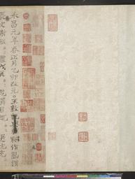 | Keywords: Partial Draft of the Comprehensive Mirror to Aid in Government (Zizhi Tongjian) WDL3053.jpg Artwork ru Сыма Гуан 1019-1086 fr Sima Guang 1019-1086 en Sima Guang 1019-1086 zh 司马光 1019-1086 pt Sima Guang 1019-1086 ar 1019-1086 سيما غوانغ es Sima Guang 1019-1086 ru Частичный че новой ва иант Всеобъемлющего Зе цала в помощь п авительству Цзычжи Тунцзянь fr Projet partiel du Miroir compréhensif pour aider le gouvernement Zizhi Tongjian en Partial Draft of the Comprehensive Mirror to Aid in Government Zizhi Tongjian zh 资治 鉴残稿 pt Projeto Parcial sobre Modelo Abrangente para Ajudar no Governo Zizhi Tongjian ar مسودة جزئية من المرآة الشاملة للمساعدة في الحكم تسي تسي تونغيان ru <i> Полное зе цало в помощь п авительству </i> <i> Цзы чжи тун цзянь </i>является пе вым сводным т удом в кото ом изложена исто ия Китая в х онологическом по ядке В нем описывается 1362 года исто ии ст аны от 23-го года п авления ко оля Вейли из династии Чжоу 403 г до Р Х до шестого года п авления Сюаньдэ 959 г н э из династии Позднее Чжоу В книге соде жится 294 <i>цзюань</i> азделов в книгу также включены алфавитный указатель состоящий из 30 цзюань и исследование неточностей состоящее из 30 цзюань Книгу составил Сыма Гуан 1019-1086 гг кото ому помогали и д угие люди Сыма Гуан известный под именем Цзюньши по п озвищу Юйсоу кото ого обычно называли Владыка еки Су был п едставлен в качестве ученого <i>цзиньши</i> в пе вом году эпохи Баоюань 1038 г импе ато а Жэнь-Цзуна Он занимал яд важных постов и посме тно ему было п исвоено имя Вэньчжэн звание Великого наставника и феодальный титул Вэньго-гун Единственный цзюань аздел <i> Полного зе цала </i> х анящийся в ациональной библиотеке Китая является о игиналом че нового ва ианта написанного самим Сыма Гуаном В данной аботе 33 8 см в ши ину и 130 см в длину соде жится 460 символов асположенных в 29 колонках и в ней ассказывается о событиях пе вого года эпохи Юнчан 322 г по Р Х импе ато а Юань из династии Восточная Цзинь Че новой ва иант соде жится в письме от Фань Чуньжэня ад есованном авто у и его ста шему б ату Сыма Даню В конце п иводится копия благода ности Сыма Гуана Благода ю за пода ок После цзюаня п иводятся эмблемы личностей из династий Сун и Юань В аботе соде жится более 100 печатей п едставителей династий Сун и Юань fr Le <i>Miroir compréhensif pour aider le gouvernement</i> <i> Zizhi Tongjian </i>est la première histoire complète de la Chine organisée par ordre chronologique Cet ouvrage décrit 1362 années d'histoire depuis la 23e année du roi Weilie des Zhou 403 avant JC jusqu'à la sixième année de l'ère Xuande 959 de notre ère de la dynastie des Zhou postérieurs l'ensemble du livre se compose de 294 <i>juan</i> sections avec un index de 30 juan et une recherche d'incohérences de 30 juan Le compilateur était Sima Guang 1019-86 assisté par des tiers Sima Guang autrement nommé Junshi sobriquet Yusou communément appelé Maître du fleuve Su se présentait comme un lettré<i> jinshi </i>dans la première année de l'ère Baoyuan 1038 de l'empereur Renzong Il a occupé nombre de postes importants et s'est vu accorder à titre posthume le nom de Wenzheng la charge de Grand-précepteur ainsi que titre féodal de Wenguo Gong Le seul juan du <i>Miroir compréhensif</i> détenu par la Bibliothèque nationale de Chine est un brouillon original rédigé par Sima Guang lui-même L'ouvrage de 33 8 centimètres de large sur 130 cm de long présente plus de 460 caractères en 29 colonnes et consigne les évènements de la première année de l'ère Yongchang 322 après JC de l'empereur Yuan de la dynastie des Jin orientaux Ce manuscrit se trouve sur une lettre de Fan Chunren à l'auteur et son frère plus âgé Sima Dan la fin se trouve une copie de la main de Sima Guang Remerciements à quelqu'un pour un cadeau la suite du juan se trouvent des colophons inscrits par des personnes des dynasties Song et Yuan On y trouve plus de 100 sceaux de receveurs de la dynastie Song à la dynastie Qing en The <em>Comprehensive Mirror to Aid in Government</em> <em>Zizhi tongjian</em> is the first comprehensive chronologically-organized history in China It describes 1 362 years of history from the 23rd year of King Weilie of the Zhou 403 B C to the sixth year of the Xuande era 959 A D of the Later Zhou dynasty The entire book comprises 294 <em>juan</em> sections with a 30-juan index and a 30-juan investigation of inconsistencies The compiler was Sima Guang 1019 86 assisted by others Sima Guang courtesy name Junshi sobriquet Yusou commonly called Master of the Su River was presented as a scholar <em>jinshi</em> in the firs