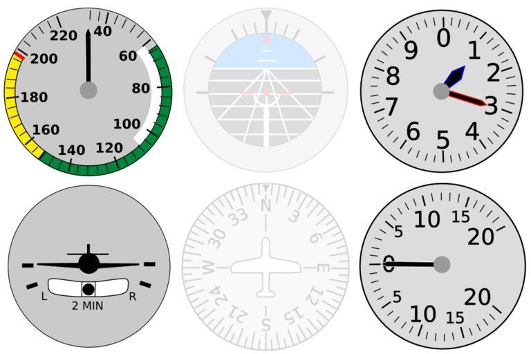 Keywords: Partial panel 6.svg bei Ausfall der Vakuumpumpe fällt der künstliche Horizont und der Kurskreisel aus partial panel hier im Bild transparent abgedeckt Own Luftpirat Flight instruments SVG aircraft instruments