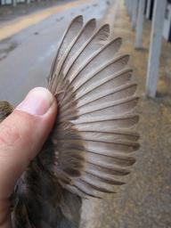 | Keywords: Partially leucistic primaries.JPG en Leucistic primaries on a house sparrow 2007-07-17 14 58 47 own PookieFugglestein cc-zero Uploaded with UploadWizard Passer domesticus in the United States female Leucism in birds Passer domesticus anatomy Passeriformes wings |