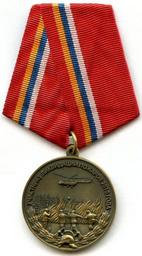 Keywords: Participant in the liquidation of the fires of 2010.jpg en Medal of the Ministry of Emergency Situations of Russia ru едаль ЧС РФ «Участнику ликвидации пожа ов 2010 года» fr Médaille du Ministère des Situations d'Urgence de Russie pour Participant dans la Suppression des Incendies de 2010 2012-01-11 own Fdutil cc-by-sa-3 0 Type orders decorations and medals Medals of Russia |