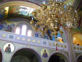 | Keywords: Particolare cattedrale ortodossa Fira, Santorini 1.JPG en A detail of the interior of the Orthodox Cathedral of Candlemas of the Lord in the village of Fira Santorini Island Greece it Un particolare dell'interno della cattedrale ortodossa della Candelora del Signore nel villaggio di Fira isola di Santorini Grecia own Zitumassin 11/08/2009 Cathedral of Candlemas of the Lord - Interior | ||||