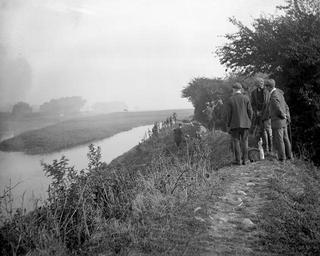 | Keywords: Party starting off YORYM-S52.jpg A group of nine men with guns a shooting party on a footpath or narrow track to the right of the picture with a bushy hedge to the right To the left the ground drops down to a river which has what looks like a tributary coming in or a large island - depicted people depicted place 1900-1912 glass plate negative 125mm long edge x 100mm short edge institution Yorkshire Museum object history exhibition history credit line accession number YORYM S52 York Museums Trust image PD-old-70-1923 PD-US Images from The Sydney Harold Smith Collection Bird hunting Uploaded with UploadWizard |