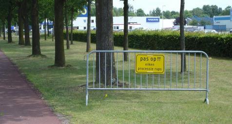 Keywords: Pas op Eikenprocessierups.jpg en Beware of Oak Processionary Own Handige Harrie 2009-06-23 PD Warning signs Rectangular signs