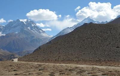 Keywords: pass road high mountains nepal snow steep wall mountains rock