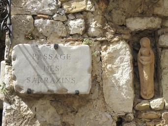 | Keywords: Passage des Sarrazins (Eze).jpg en Street sign of the passage des Sarrazins with the statue of Madonna and Child in a small niche Eze Alpes-Maritimes France In French sarrasin is the name of the muslims who invaded Spain in the VIIIth century and who occupied a part of it until XVth century fr Plaque de rue du passage des Sarrazins avec la statue de la Vierge et de l'Enfant Jesus dans une petite niche Èze Alpes-Maritimes own Tangopaso 2012-04-06 13 06 47 43 727747 7 361167 region FR_heading W Streets in Èze Street signs in Alpes-Maritimes Eze Niches in Alpes-Maritimes Eze Statues of Madonna and Child in Alpes-Maritimes Eze |