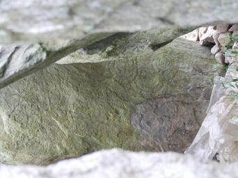 | Keywords: Passage grave Knockroe Carvings.jpg en Passage grave Located in Knockroe County Kilkenny Inscriptions on interior side of back stone of the chamber The passage is aligned with the rising sun of the Winter solstice own Laurel Lodged 2010-08-06 Passage graves Archaeological sites in Ireland National monuments of County Kilkenny |