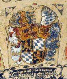 | Keywords: Passauer Liedertisch Einzelwappen 004.jpg Passauer Liedertisch 1590; Sammlung alter Musikinstrumente in der Neuen Burg Kunsthistorisches Museum Wien<br />Wappen der Passauer Domkapitulare<br /> Ferdinand Pfalzgraf bei Rhein own own photograph 2010-10 Gravur Caspar von der Sitt 1590<br />Photo Andreas Praefcke Passauer Liedertisch Photos by User AndreasPraefcke Coats of arms of the House of Wittelsbach Coats of arms of the Palatinate | ||||