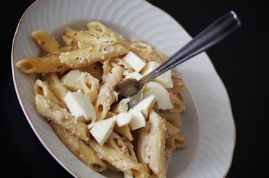 Keywords: pasta meal lunch a bowl cooking sliac mozzarella