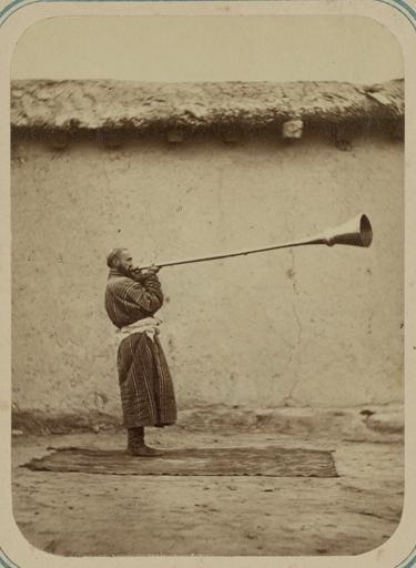 Keywords: Pastimes of Central Asians. Musicians. A Man Playing a Karnay, a Long-necked Trumpet-like Instrument WDL10827.png Artwork ru Кун Александ Людвигович 1840 1888 гг fr Kun Aleksandr L 1840-1888 en Kun Aleksandr L 1840-1888 zh 亚历山大·L· ,1840-1888 年 pt Kun Aleksandr L 1840-1888 ar كُن، ألكسندر ل ، 1840-1888 es Kun Aleksandr L 1840-1888 ru Развлечения жителей С едней Азии узыканты ужчина за иг ой на ка нае инст ументе с длинным стволом напоминающем т убу fr Passe-temps des populations d'Asie Centrale Musiciens Homme jouant du karnay instrument à long tube apparenté à une trompette en Pastimes of Central Asians Musicians A Man Playing a Karnay a Long-necked Trumpet-like Instrument zh 中亚人的娱乐活动 乐师 男乐师正 演奏卡尔内( 种长颈 类似小号的乐器) pt Passatempos dos povos da Ásia Central Um homem tocando um Karnay instrumento longo semelhante a um trompete ar وسائل الترفية لدى سكان وسط آسيا موسيقيون رجل يعزف على الكارناي، آلة طويلة العنق تشبه البوق ru Эта фотог афия входит в этног афическую часть <em> Ту кестанского альбома </em><em></em> всесто оннего исследования Цент альной Азии п едп инятого после того как в 1860-х годах в егионе установилось господство Российской импе ии Альбом созданный по аспо яжению гене ала Константина Пет овича фон Кауфмана 1818 1882 годы пе вого гене ал-губе нато а оссийского Ту кестана состоит из четы ех частей в шести томах «Часть а хеологическая» два тома «Часть этног афическая» два тома «Часть п омысловая» один том и «Часть исто ическая» один том Основным составителем альбома был оссийский востоковед Александ Людвигович Кун аботавший совместно с иколаем Венедиктовичем Богаевским В альбоме п едставлено около 1200 фотог афий а также а хитекту ные планы аква ельные исунки и ка ты «Часть этног афическая» включает в себя 491отдельную фотог афию на 163 листах а фотог афиях изоб ажены п едставители азличных на одов егиона листы 1 33 повседневная жизнь и итуалы листы 34 91 а также виды де евень и го одов уличные то говцы и комме ческая деятельность листы 92 163 <br>Этног афические фотог афии; узыкальные инст ументы; узыканты; Фотог афические исследования; По т етные фотог афии; По т еты; Тю кские на оды fr Cette photographie est extraite de la partie ethnographique de l'<em>Album du Turkestan</em> étude visuelle complète de l'Asie centrale entreprise après que l'Empire russe prit le contrôle de la région dans les années 1860 Commandé par le général Konstantin Petrovich von Kaufman 1818 1882 premier gouverneur général du Turkestan russe l'album est composé de six volumes en quatre parties la partie archéologique deux volumes la partie ethnologique deux volumes la partie sur les métiers un volume et la partie historique un volume L'album fut essentiellement compilé par l'orientaliste russe Aleksandr L Kun assisté de Nikolai V Bogaevskii Il comporte près de 1200 photographies et inclut également des plans architecturaux des dessins à l'aquarelle et des cartes La partie ethnographique compte 491 photographies sur 163 planches montrant des individus des différentes peuplades de la région planches 1 à 33 des scènes de la vie quotidienne et des rites planches 34 à 91 ainsi que des vues de villages et de villes de vendeurs ambulants et d'activités commerciales planches 92 à 163 <br>Photographies ethnographiques; Instruments de musique; Musiciens; Inventaires photographiques; Portraits photographiques; Portraits; Peuples turciques en This photograph is from the ethnographical part of <em>Turkestan Album</em><em> </em>a comprehensive visual survey of Central Asia undertaken after imperial Russia assumed control of the region in the 1860s Commissioned by General Konstantin Petrovich von Kaufman 1818 82 the first governor-general of Russian Turkestan the album is in four parts spanning six volumes Archaeological Part two volumes ; Ethnographic Part two volumes ; Trades Part one volume ; and Historical Part one volume The principal compiler was Russian Orientalist Aleksandr L Kun who was assisted by Nikolai V Bogaevskii The album contains some 1 200 photographs along with architectural plans watercolor drawings and maps The Ethnographic Part includes 491 individual photographs on 163 plates The photographs show individuals representing the different peoples of the region Plates 1 33 ; daily life and rituals Plates 34 91 ; and views of villages and cities street vendors and commercial activities Plates 92 163 <br>Ethnographic photographs; Musical instruments; Musicians; Photographic surveys; Portrait photographs; Portraits; Turkic peoples zh 这张照片出自<em> 其斯 相册 </em>的民族部分,该相册是俄罗斯 国 19 世纪 60 年代取得中亚控制 后, 手制 的 部针对该 区的综合 图像调查记录 相册由俄罗斯驻 其斯 (俄罗斯 国中亚属 的名称